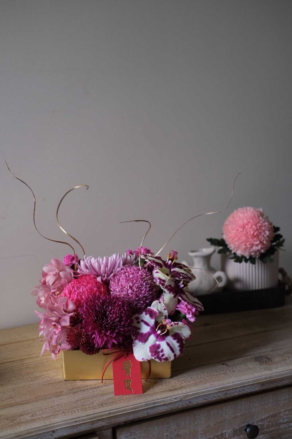 節期花市供貨常有不穩定狀況,商品盡可能如照片使用相同花器花材,若遇花市缺貨或花況不佳,請允許花藝師以等值或相同氛圍材料取代。